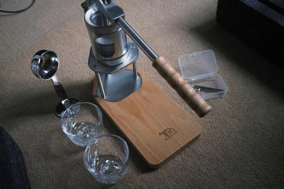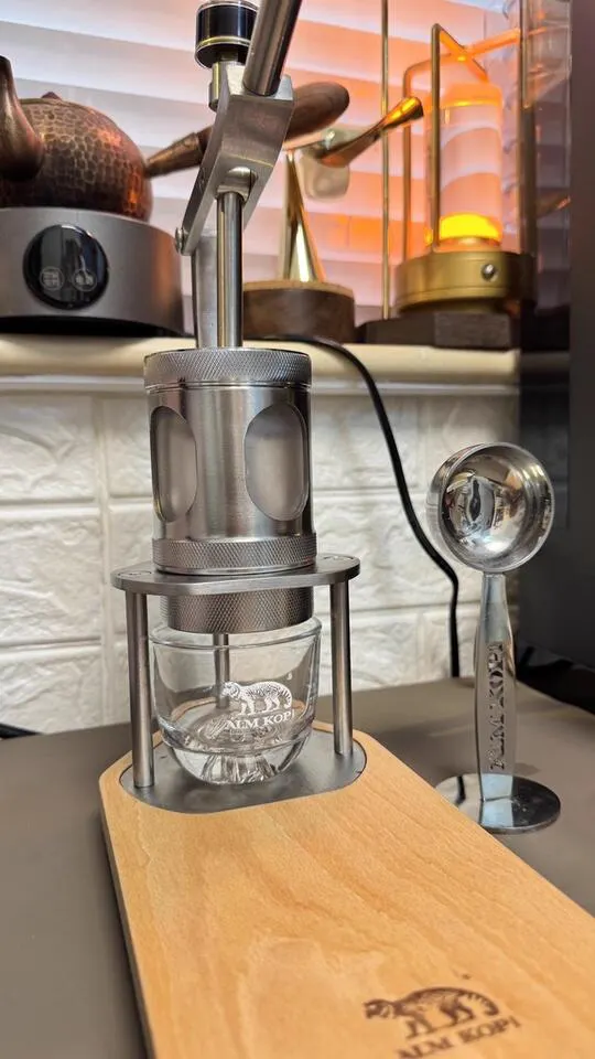 First, please preheat the chamber (this step is very important, keep the temperature stable, and the extracted coffee liquid will definitely be excellent). Then pour hot water to about eight-tenths full (water at 92 degrees Celsius extracts the best flavor), and then put the piston in.