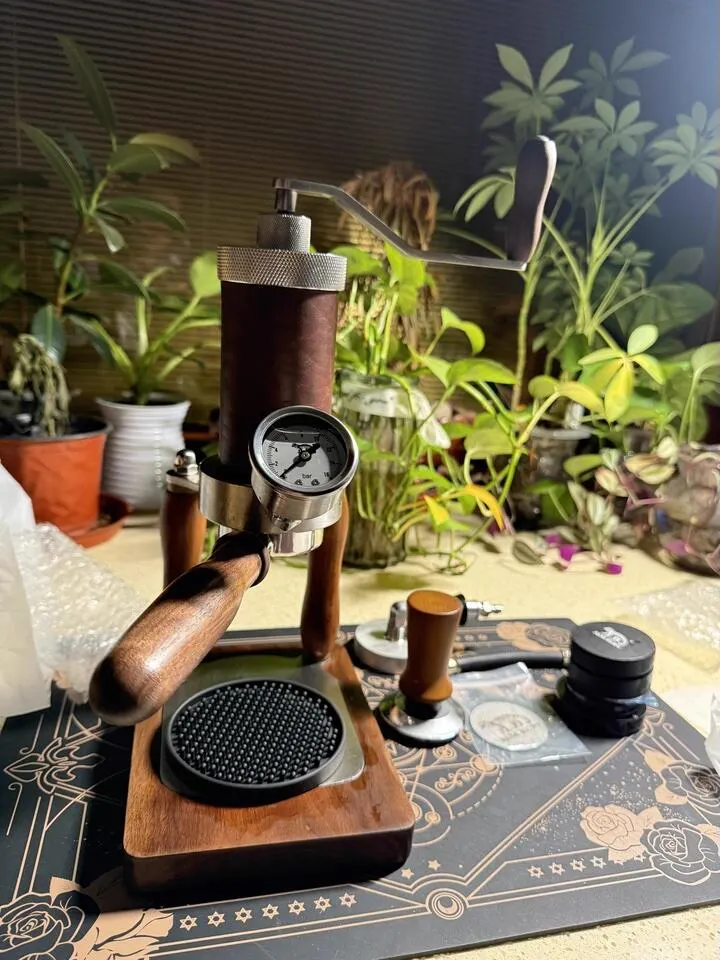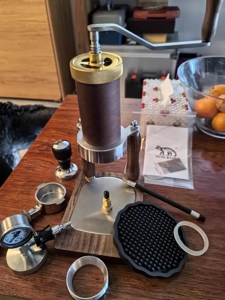 The ultimate dual-mode brewer for the adventurer. Switch instantly between tactile hand-cranking or effortless air-pump extraction. Wrapped in genuine hand-stitched cowhide for rugged elegance. Perfect for users who find traditional levers too heavy to pull.